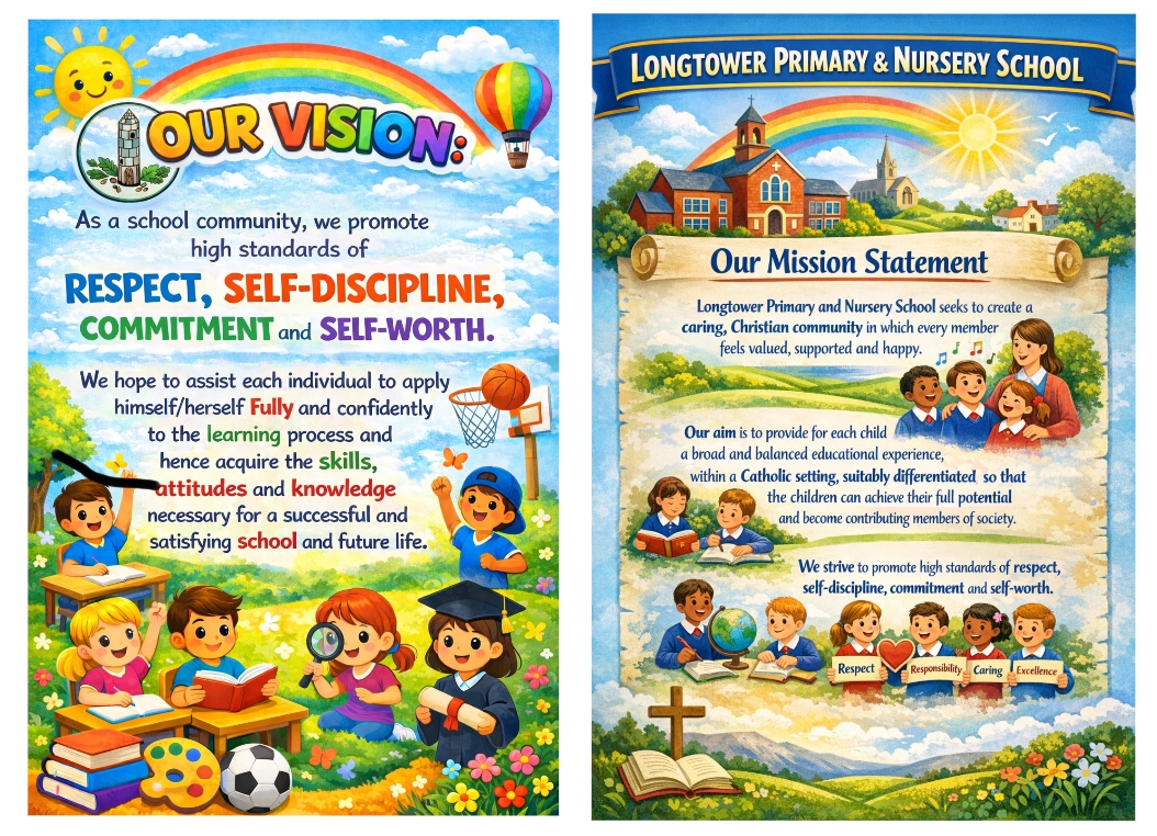 Long Tower is a beautiful school dating back over 100 years. While rooted in tradition, our school is bright, modern, and welcoming inside and we embrace a forward-thinking approach to educating our children. We aim to deliver the Northern Ireland Curriculum to the highest standard, allowing your child to develop a love of learning, encouraging them to be thoughtful and reflective, to understand their place in the world and to set themselves high standards both in their work and discipline.